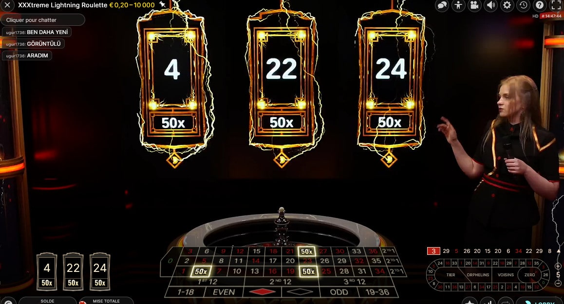 Lors de la phase de mise, XXXtreme Lightning Roulette nous propose de mettre en jeu de 0,20€ jusqu’à 10 000€.